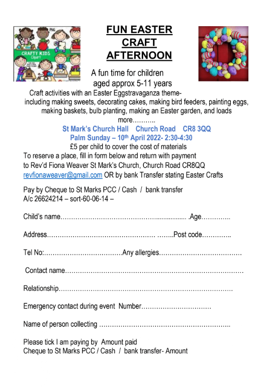 Please download an application form and return with your payment to Revd' Fiona.